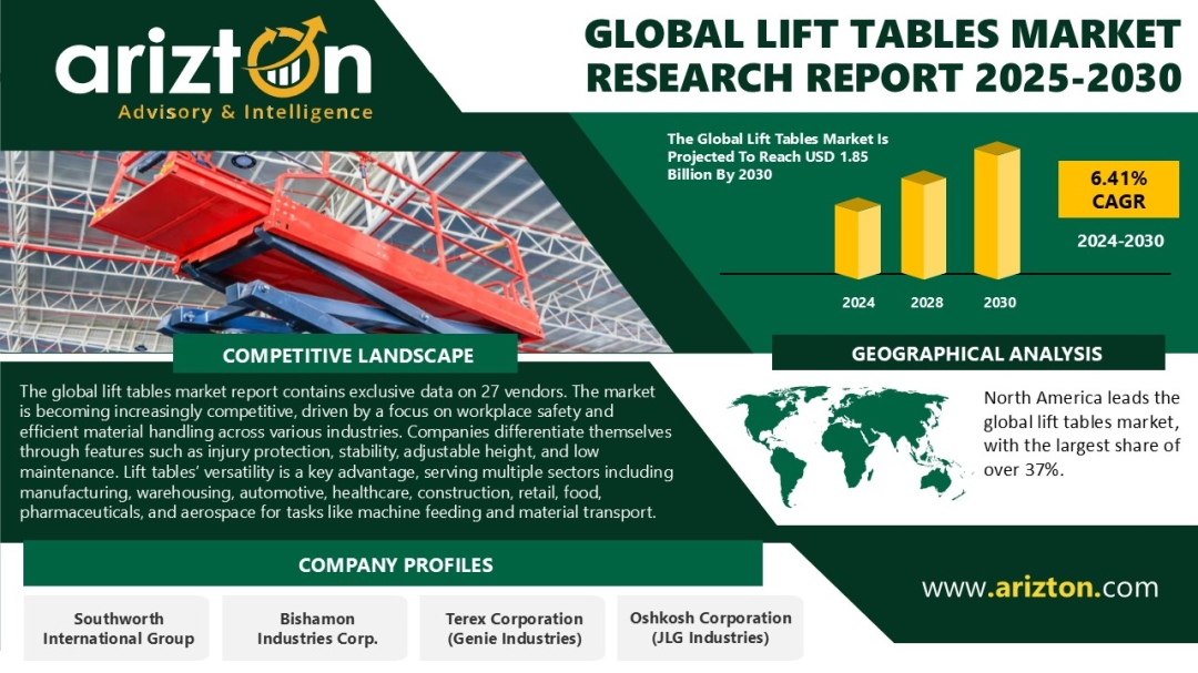 To view the original version on ABNewswire visit: Global Lift Tables Market to Reach USD 1.85 Billion by 2030 as Automation and Digitization Fuel Strategic Growth | Arizton