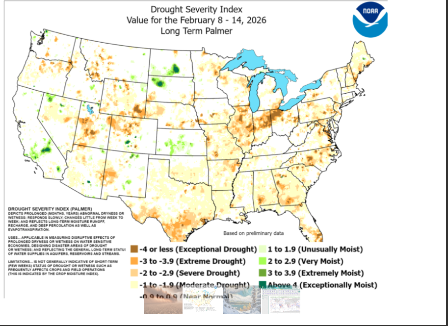 Recent massive snow and avalanches in areas like Lake Tahoe (many skiers still stranded) helped whip up 40-50 MPH winds in the Plains this last week that resulted in major dust storms. This is beginning to hurt some wheat from Oklahoma to eastern Colorado.