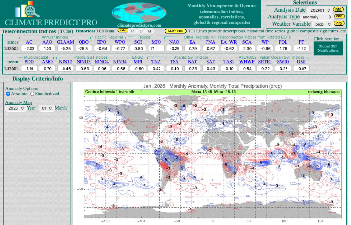 I use teleconnections such as La Niña, El Niño, Arctic Sea Ice, the Northern Atlantic Oscillation Index and many more to predict weather and commodity prices for farmers and traders around the world.