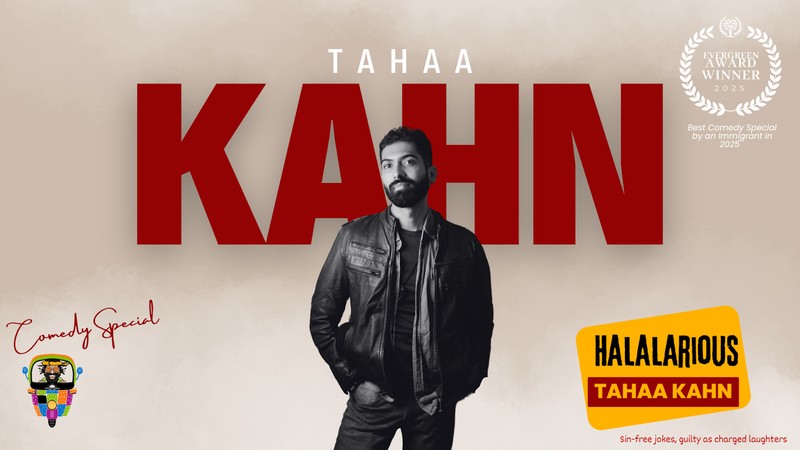 "Halalarious - sin free jokes, guilty as charged laughter." Tahaa Kahn's debut stand-up special, is now available to keep audiences laughing nonstop." The special delivers a unique blend of satire, storytelling, and cultural commentary, exploring themes such as faith, identity, and belonging. Kahn’s humor, rooted in his personal experiences as an immigrant, challenges stereotypes and invites audiences to think deeply about the world around them, all while laughing along with Kahn's sharp wit.