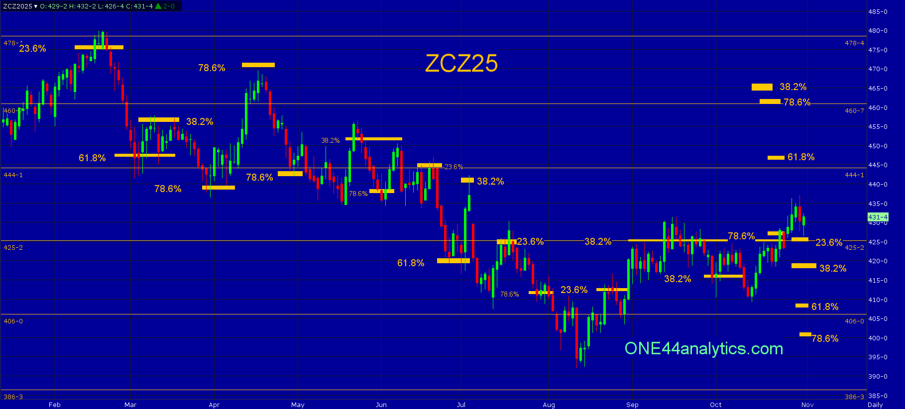 It had one close below 426.50 and the next day it was right back above it turning the Intermediate trend positive, with the new high this week we will retrace back to the 8/12/25 low to see if the trend will continue. The strongest retracement to hold is 23.6% at 426.00 and this will be the key level for the week.