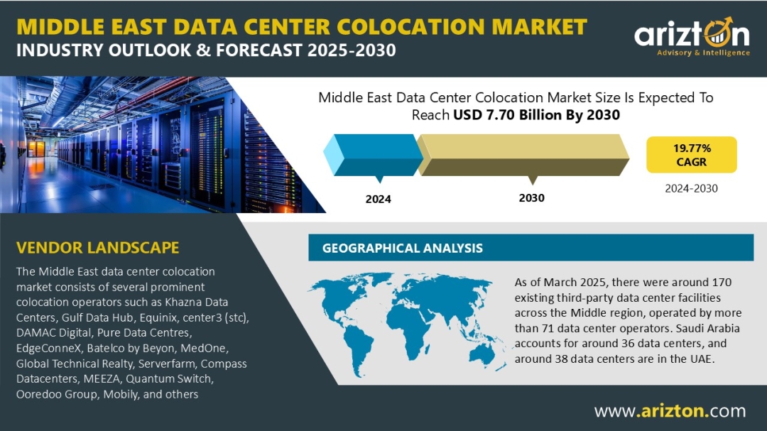 To view the original version on ABNewswire visit: Middle East Data Center Colocation Market Transforms from Energy Hub to Digital Powerhouse, Set to Cross USD 7.70 Billion by 2030 | Arizton