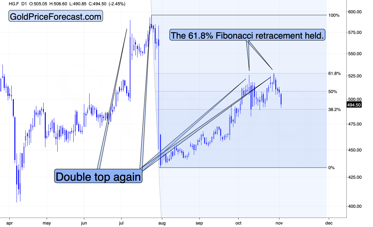 It just formed a double top – just like it did in July. This time, the top formed at the 61.8% Fibonacci retracement level – once again proving the importance of those levels.