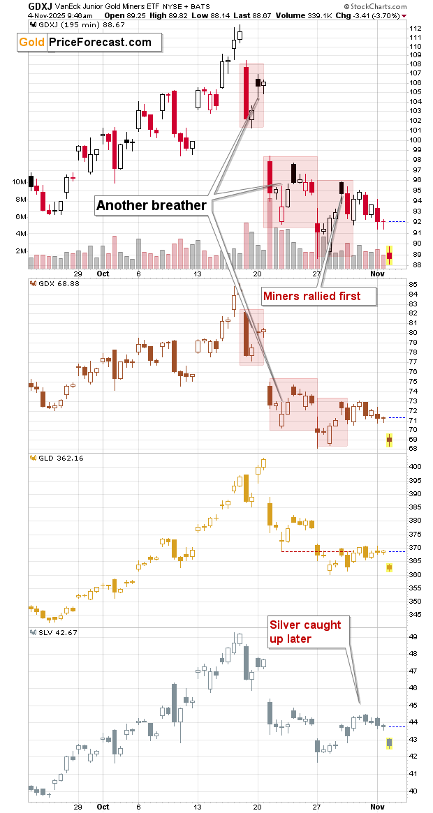 The GDXJ just moved below its October lows in tune with my forecast for gold price in Nov. 2025 – congratulations to everyone benefitting from this move.