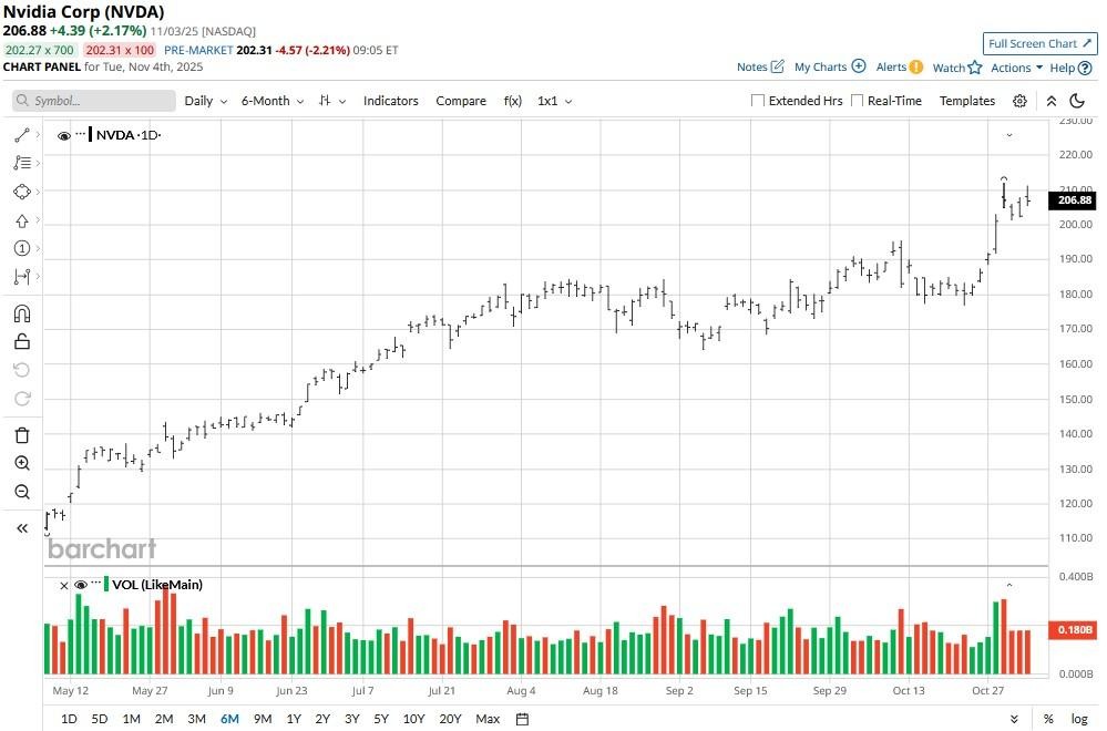 NVDA stock is currently trading only a tad below its 52-week high at about $212. From a technical perspective, a break above that level could refresh bullish momentum heading into 2026 as well.