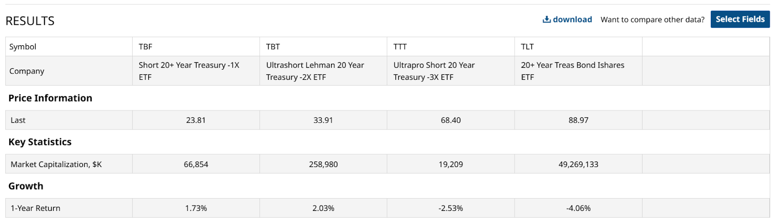 Actually, we’ve been able to use some of these for many years. They represent just a few of several inverse ETFs that move opposite bond prices. As a reminder, when bond yields rise, bond prices fall. So how does a trader protect against a sudden, steep drop in TLT (TLT) or a similar rate-sensitive position? Here are three ways, essentially the same idea but in -1x, -2x and -3x varieties.
