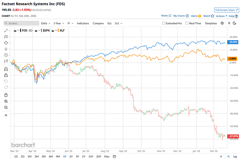 FDS’ shares have underperformed the broader market over the past year and in 2026. FDS stock has declined 58.2% over the past 52 weeks and 32.8% on a year-to-date (YTD) basis. In comparison, the S&P 500 Index ($SPX) has returned 13% over the past year and grown marginally in 2026.