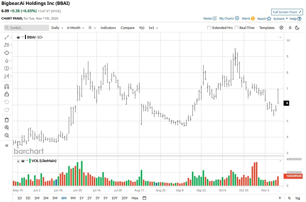 BBAI shares, however, pared back much of their intraday gains by market close, ending Tuesday up roughly 6.8%.