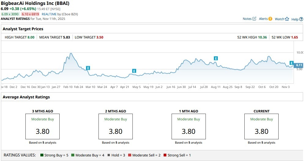 While the consensus rating on BBAI stock remains at “Moderate Buy,” the mean target of $5.83 indicates potential downside of more than 7% from here.