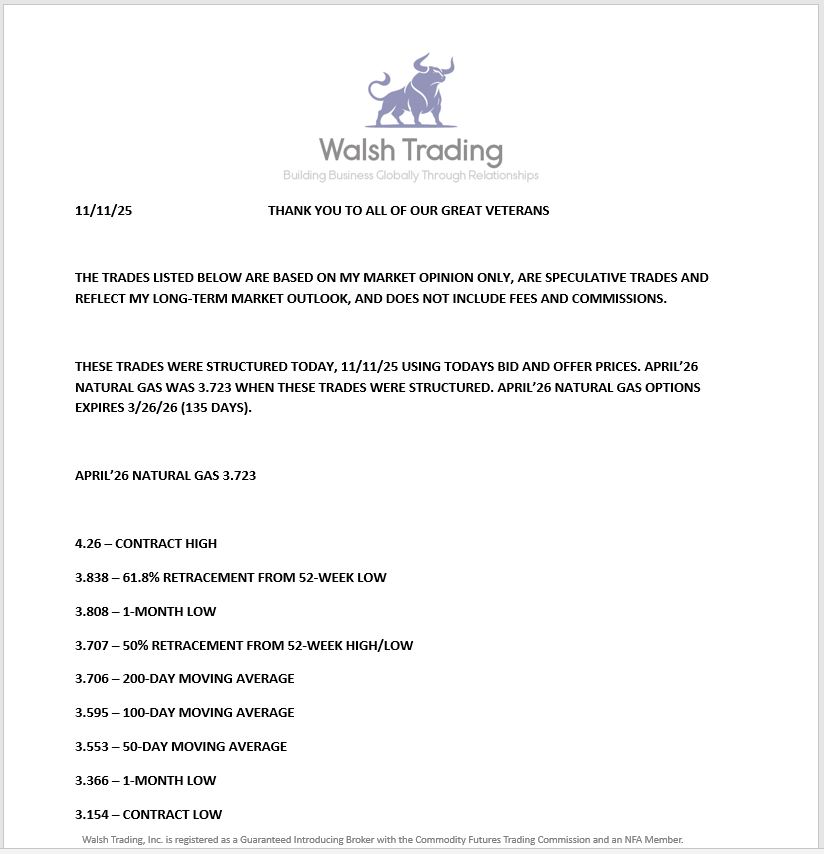 APRIL'26 NATURAL GAS TRADES STRUCTURED TODAY 11/11/25 BELOW - IF YOU WOULD LIKE TO SEE MY TRADE RECOMMENDATIONS RIGHT AFTER THEY ARE STRUCTURED - JUST SEND ME AN EMAIL