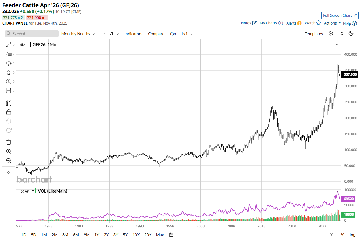50-Year Cattle Chart Below. Whenever it Breaks it Will Be a Spectacular Collapse.