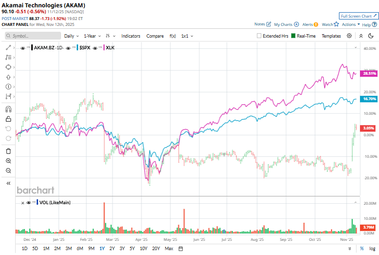 On Nov. 6, Akamai reported solid third-quarter earnings, and its shares popped 14.7% in the following trading session. The company delivered revenue of $1.06 billion, up 5% year-over-year, fueled by robust growth in its security and cloud computing segments. Security revenue climbed 10% to $568 million, supported by strong demand for API protection and zero-trust solutions.