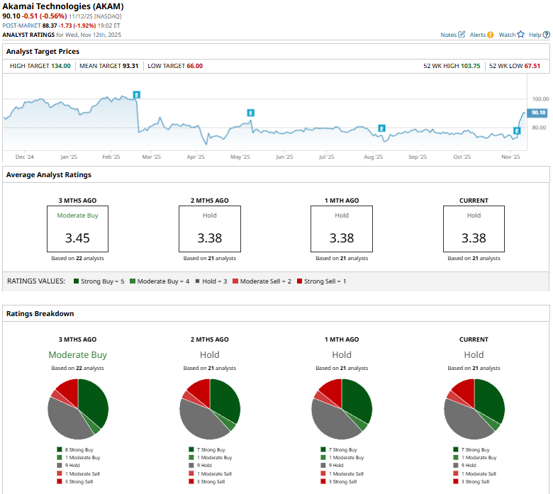 On Nov. 7, Scotiabank analyst Patrick Colville lowered Akamai’s price target slightly to $94 from $95 while maintaining an “Outperform” rating. He described the company’s Q3 results as “respectable” and noted that Akamai is in a stronger position than a year ago, with limited downside risk at current levels.