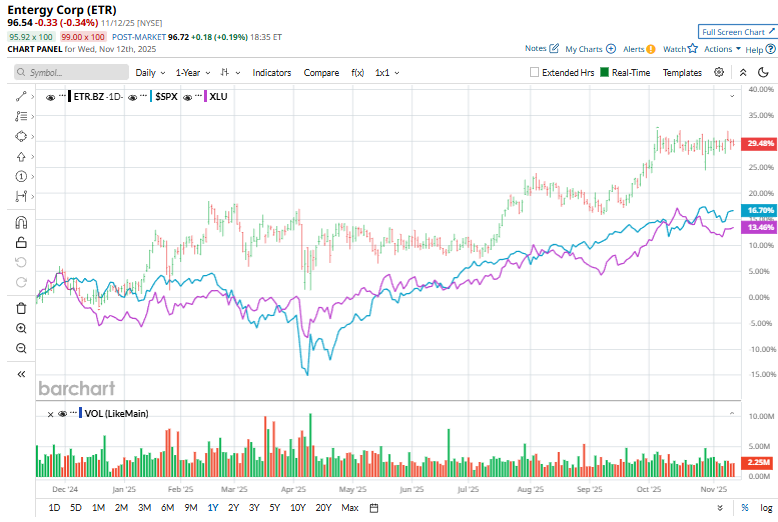 Shares of the utility titan have outperformed the broader market over the past 52 weeks. ETR stock has surged 29.4% over this time frame, while the broader S&P 500 Index ($SPX) has rallied 14.5%. Moreover, shares of Entergy are up 18.8% over the past six months, compared to SPX's 17.2% gain.
