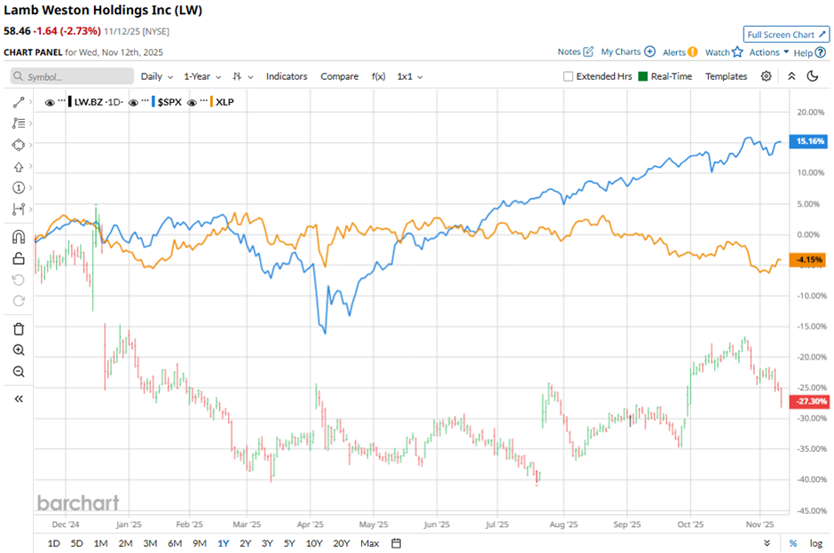 Shares of the frozen foods supplier have underperformed the broader market over the past 52 weeks. LW stock has declined 27.3% over this time frame, while the broader S&P 500 Index ($SPX) has gained 14.5%. Moreover, shares of LW are down 12.5% on a YTD basis, compared to SPX’s 16.5% increase.