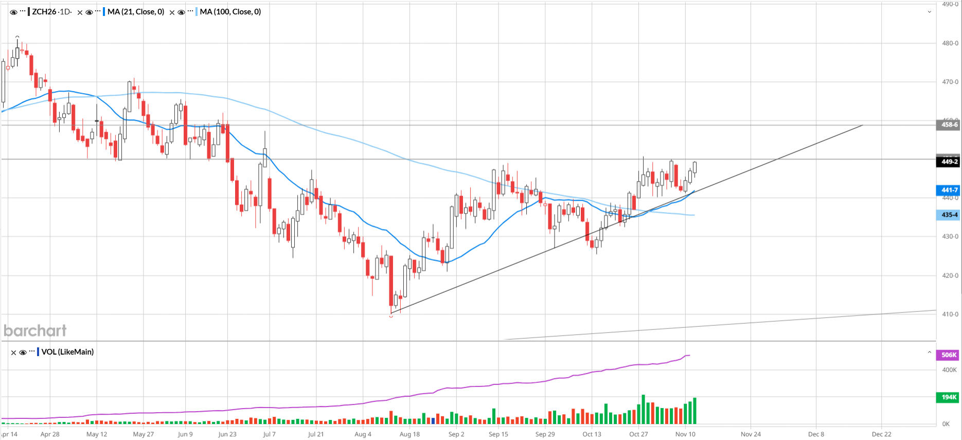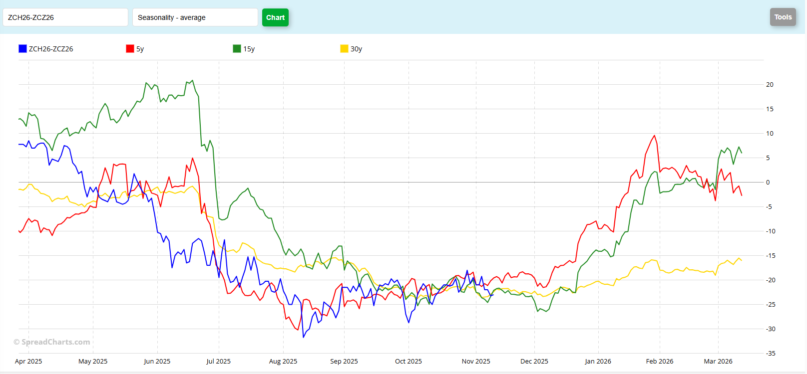 I like buying the March/ December ’26 Corn spread. It looks this spread can continue higher the next couple months if the pattern holds.