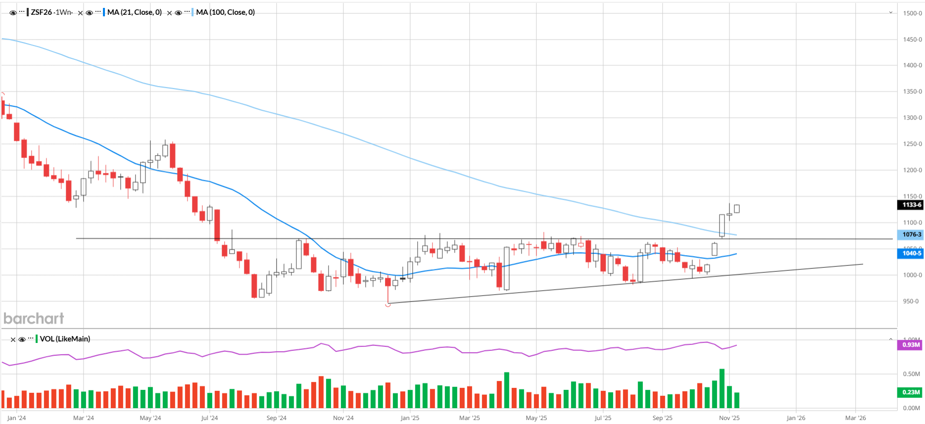 March’26 Soybean Options Expire 2/20/26 (99 Days)