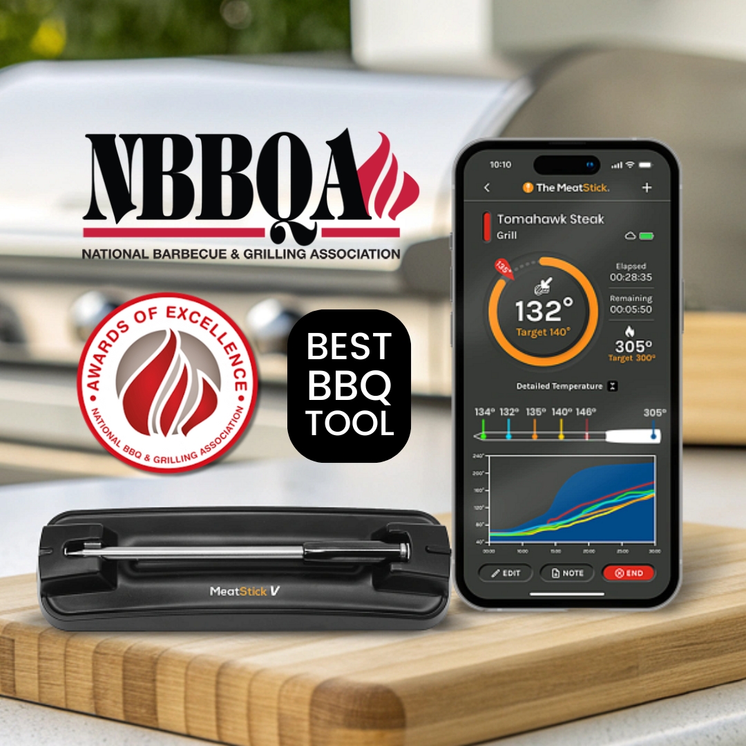 The MeatStick V Wireless Smart Meat Thermometer has been recognized at the National Barbecue & Grilling Association (NBBQA) Awards of Excellence, earning top honors in the BBQ Tool/Accessory category. This marks the third NBBQA award for the brand, following wins in 2019 and 2020, further establishing its legacy as a trusted name in barbecue technology and innovation.