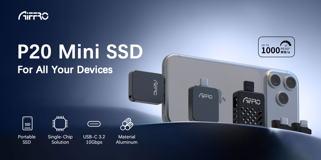 Aiffro, a technology brand redefining portable storage, proudly announces the launch of the groundbreaking Aiffro P20 Mini Portable SSD. This pioneering product stands as the world's first mini SSD compatible with both Lightning and Type-C interfaces, marking a significant leap forward in universal connectivity. The P20 officially launches on Kickstarter today, November 13, 2025.