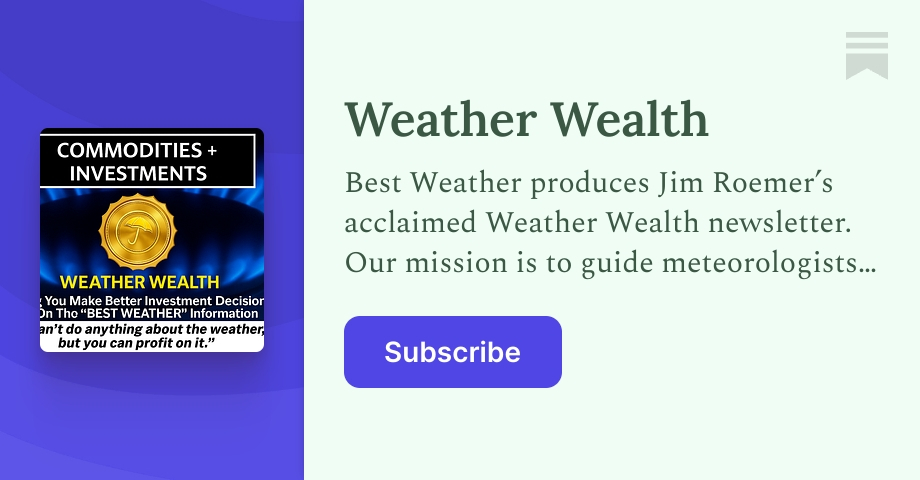 by Jim Roemer - Meteorologist - Commodity Trading Advisor - Principal, Best Weather Inc. & Climate Predict - Publisher, Weather Wealth Newsletter
