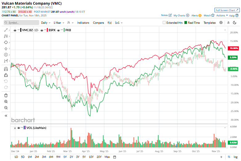Shares of the largest producer of construction aggregates have underperformed the broader market over the past year. VMC has gained 1.1% over this time frame, while the broader S&P 500 Index ($SPX) has rallied nearly 12.3%. In 2025, VMC stock is up 9.6%, falling behind the SPX’s 12.5% rise on a YTD basis.