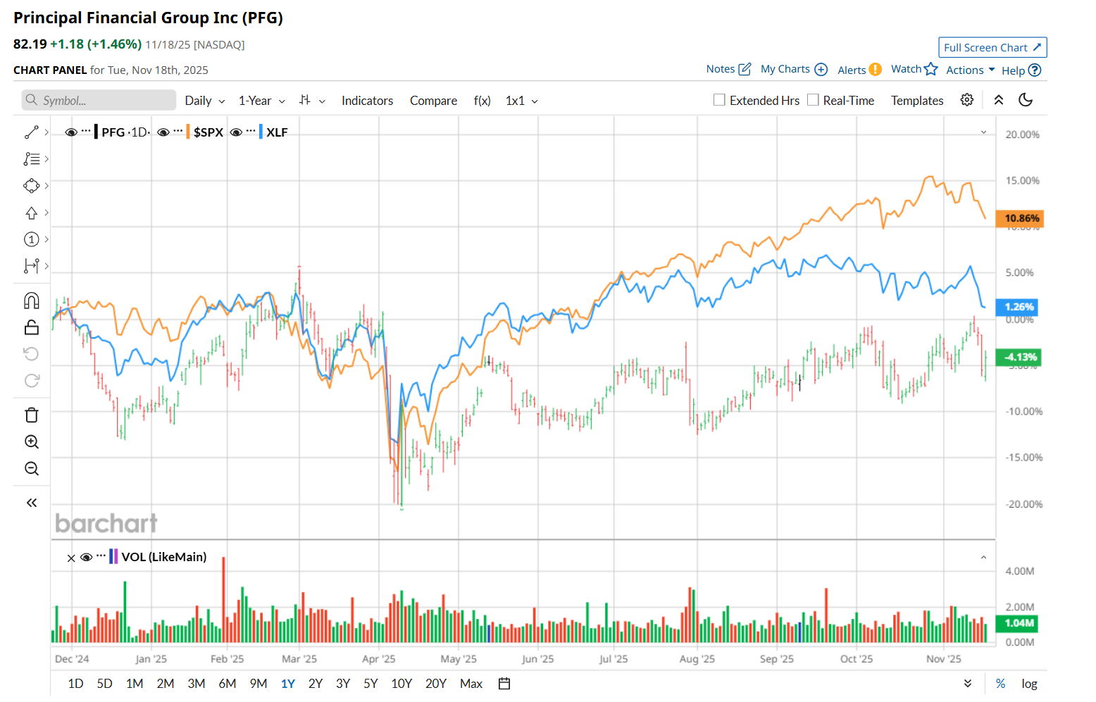 Valued at a market cap of $18 billion, Principal Financial Group, Inc. (PFG) is a financial investment management and insurance company based in Des Moines, Iowa. It provides retirement, asset management, and insurance products and services to businesses, individuals, and institutional clients.