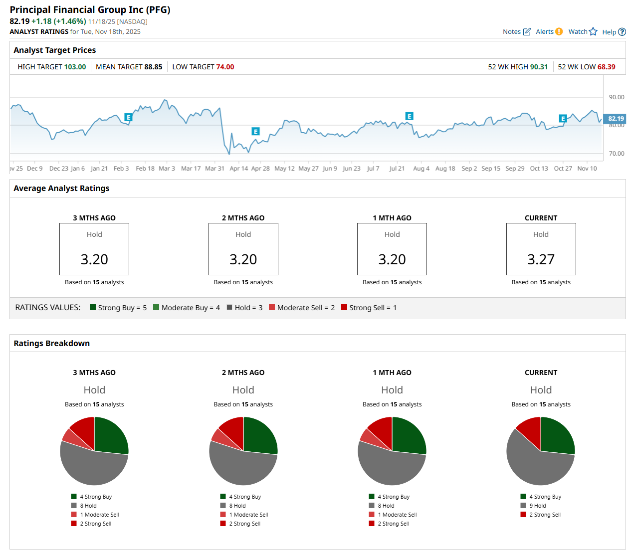 On Nov. 17, Morgan Stanley (MS) maintained an "Underweight" rating on PFG and raised its price target to $87, indicating a 5.9% potential upside from the current levels.