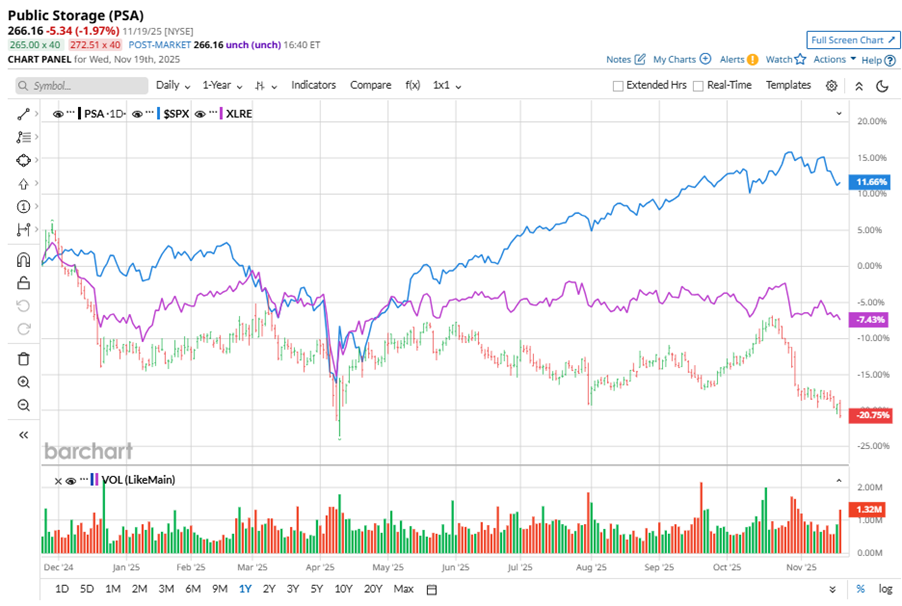 Shares of this self-storage giant have underperformed the broader market over the past year. PSA has declined 20.4% over this time frame, while the broader S&P 500 Index ($SPX) has rallied nearly 12.3%. In 2025, PSA stock is down 11.1%, compared to the SPX’s 12.9% rise on a YTD basis.