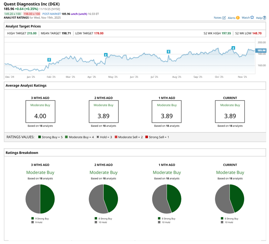 On Oct. 27, Piper Sandler Companies (PIPR) kept a “Neutral” rating on DGX and raised the price target to $200, implying a potential upside of 7.6% from current levels.