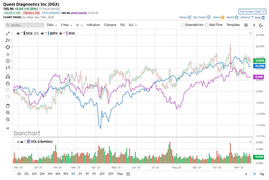 Shares of this leading diagnostic testing & services provider have outperformed the broader market over the past year. DGX has gained 15.4% over this time frame, while the broader S&P 500 Index ($SPX) has rallied nearly 12.3%. In 2025, DGX stock is up 23.3%, surpassing SPX’s 12.9% rise on a YTD basis.