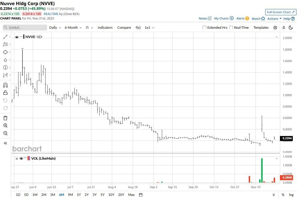 Despite the massive surge, NVVE stock is trading at a fraction of its price at the start of 2025.