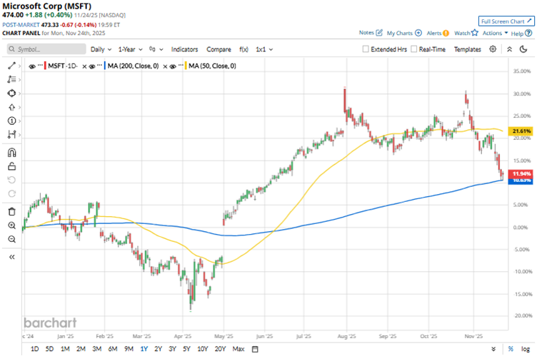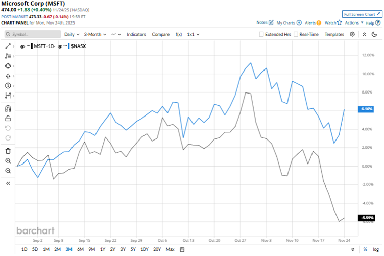 Microsoft’s stock had reached a 52-week high of $555.45 on July 31, following the release of strong fourth-quarter results for fiscal 2025, but it is down 14.7% from that level. However, cautious market reaction due to concerns over hefty capital expenditures has led to a selloff in the stock. Over the past three months, Microsoft’s stock has been down by 6.6%. On the other hand, the tech-heavy Nasdaq Composite ($NASX) index gained 6.2% in the same period.