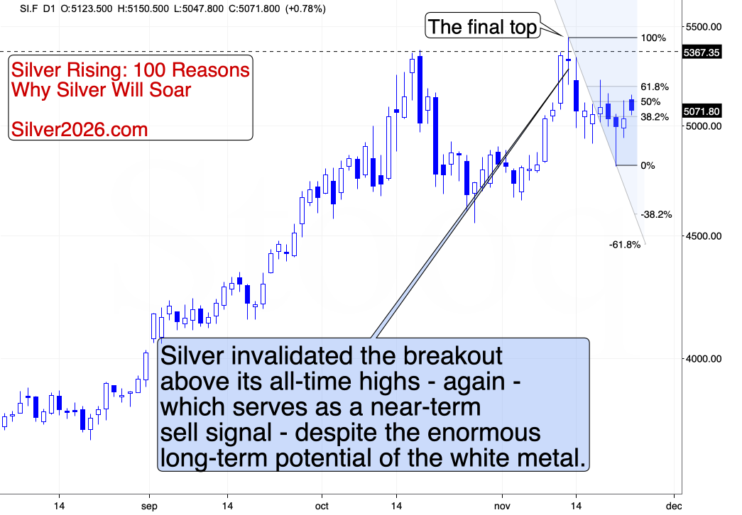 Yes, even despite the 100 reasons for silver to soar in the long run, it can still slide in the medium term, especially if we get serious trouble on the stock market. And given that declining bitcoin is likely heralding trouble in the AI sector, that’s exactly what we might get.