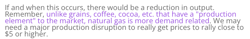 When temperatures in the teens and 20s knock out Gulf Coast production, this often has a bullish reaction in natural gas. It is rare for this to happen.