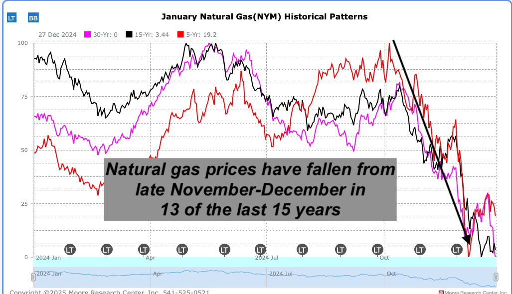 In 2022, natural gas prices soared in mid-December, as cold lowered Gulf Coast production. Prices then collapsed more than 20-30% on a warm January and February.