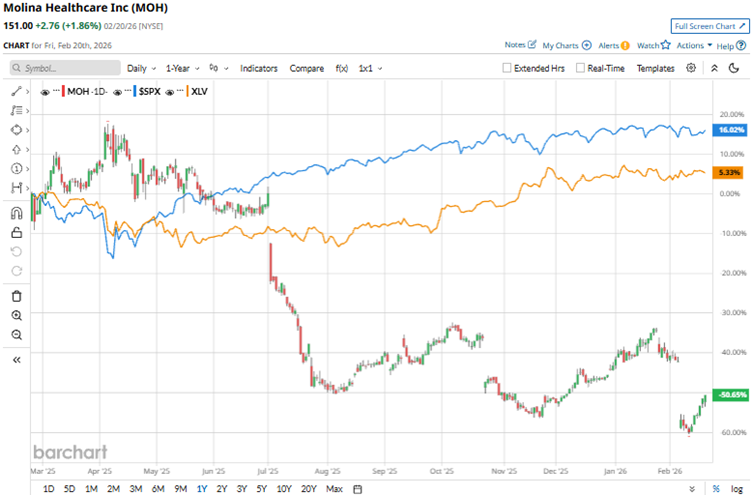 Rising costs in the Medicaid and Medicare segments, alongside the Trump administration’s changes to the Affordable Care Act (ACA), have led Molina’s stock to decline. Over the past 52 weeks, the stock has dropped 48.2%, while it is down 13% year-to-date (YTD). The stock had reached a 52-week low of $121.06 on Feb. 11 but is up 24.7% from that level, having somewhat recovered, gaining 19.2% over the past five days.