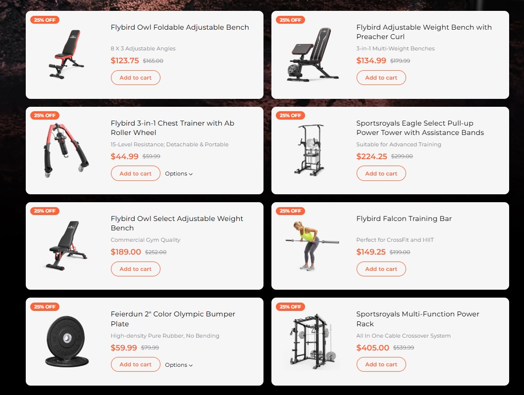 Some of the trendiest products featured in the sale include fan favorites from each brand: Yosuda's EB3 Indoor Cycling Bike, Sportsroyals Stair Stepper, BCAN's ST2 Mini Spring Trampoline, and Flybird's WB8 Heavy Duty Weight Bench—all now available under the FED Fitness brand with significant savings.