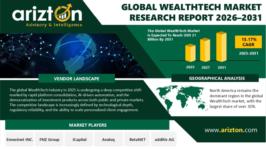 To view the original version on ABNewswire visit: Global WealthTech Market to Reach USD 21 Billion by 2031 from USD 9 Billion in 2025, Growing at a CAGR of 15.17% | Arizton