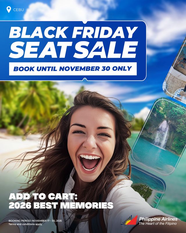 Offered for a limited time only, book now at PAL Black Friday Seat Sale, PAL mobile app, PAL hotline at (+632) 8855 8888, or via preferred ticketing offices and travel agents.