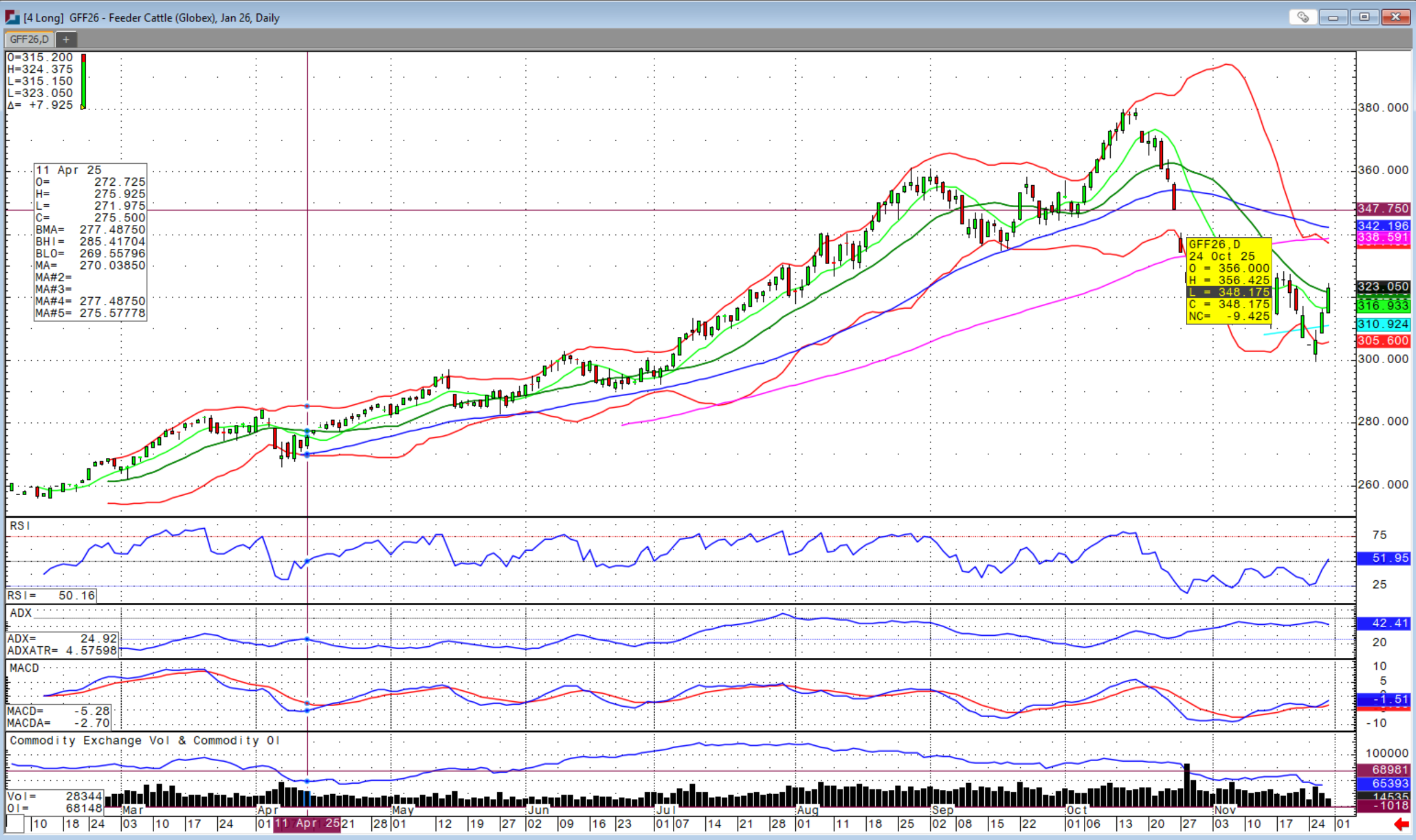 With all the headwinds that this Administration is leaning into, being the one in charge if and when screwworm reemerges in the US market since it was eradicated in the 1960s is not one you want to claim. We will see how this plays out, but I think January feeders have a chance to get back to the $340-345.00 level. We could see more slaughter plant closures to come, but this is just a sign of how few cattle are available in the market. Future closures should be less impactful as this first Tyson closure and shift reduction at another plant with markets limit down on Monday after the prior Friday announcement. However, be cautious and reward rallies as the cattle complex will also be sensitive to any major correction or volatility in the stock market should that come to fruition. Â