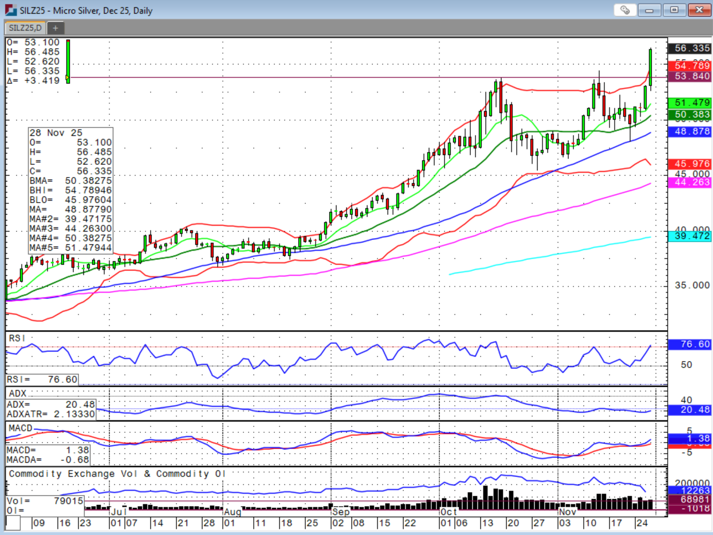 Quickly on metals, high ho silver away! Yes, I trade silver if you’re interested as we made new highs above $56 per troy ounce on Friday. Gold also traded higher, but not back to its recent highs, yet. Is the rally in metals a sign of nervousness ahead for the broader market? It seems so with stock performance and investment outside the AI boom being meager at best.Â