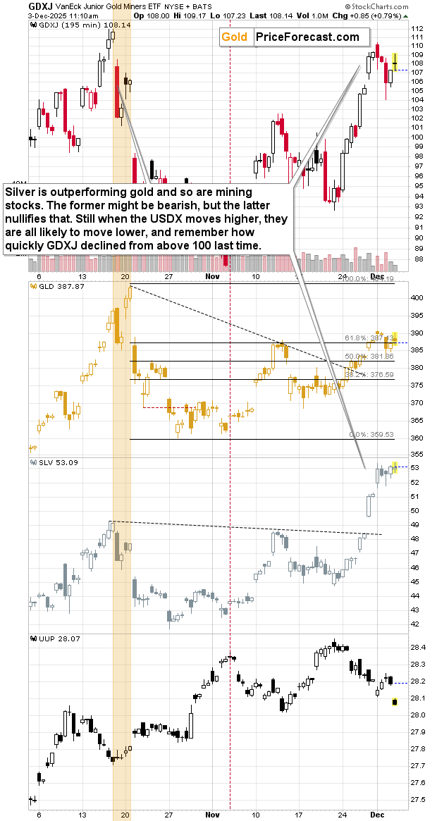 In yesterday’s premium analysis, I argued that silver might have decoupled from gold and miners. Today’s action doesn’t oppose it.