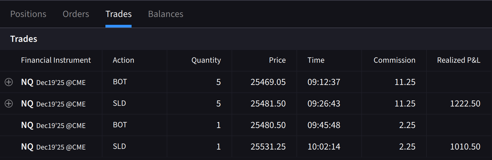 Actual futures trades