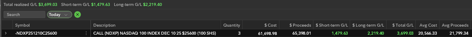 Actual NDX options trades