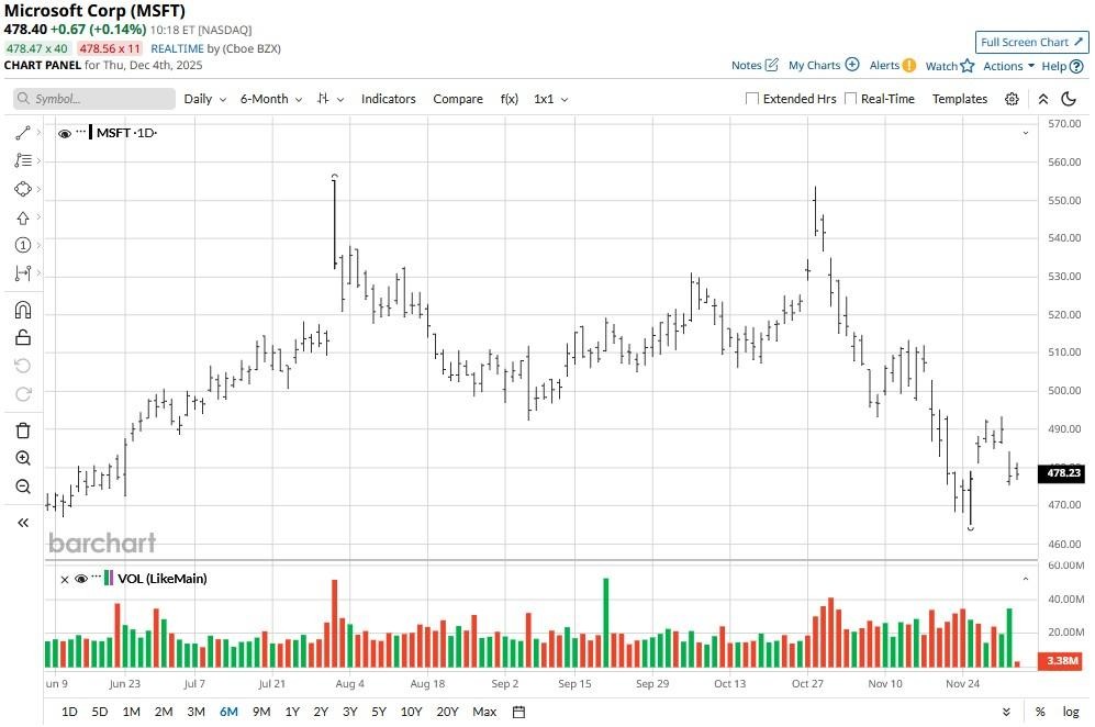 At the time of writing, Microsoft shares are down over 10% versus their year-to-date high in late October.