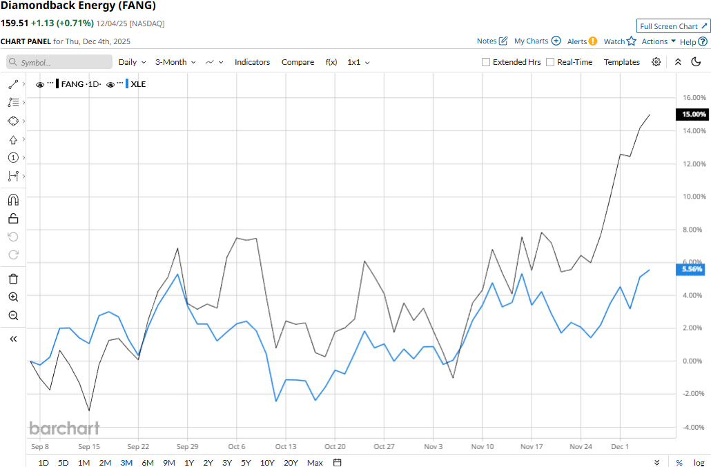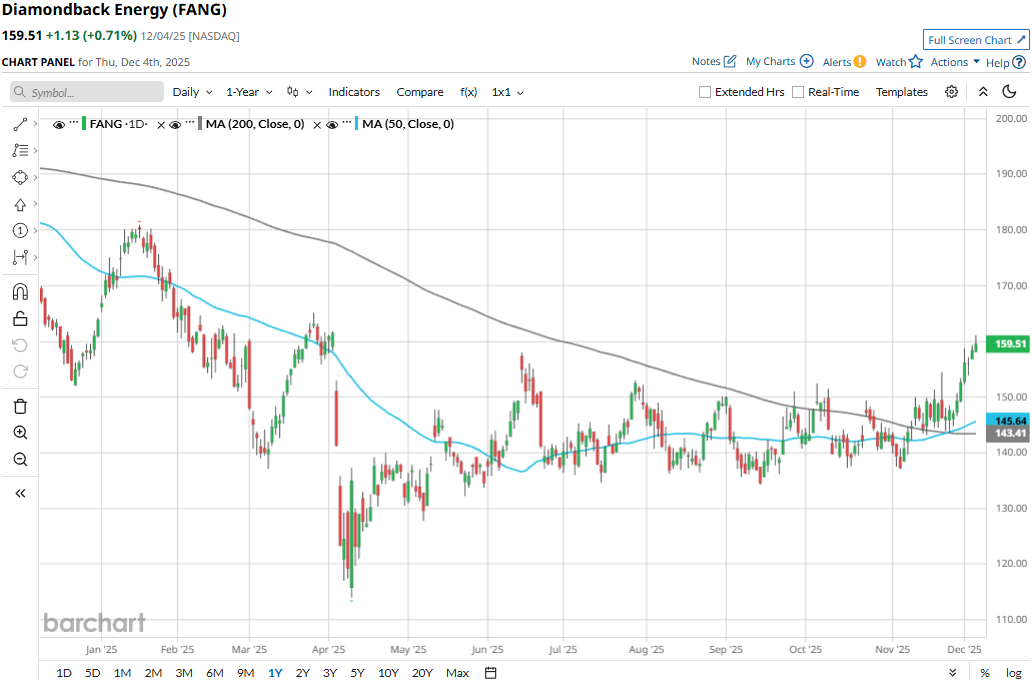 FANG stock traded below its 200-day moving average over the past year until mid-November and climbed above its 50-day moving average in early November, underscoring its previous bearish movement and recent upturn.