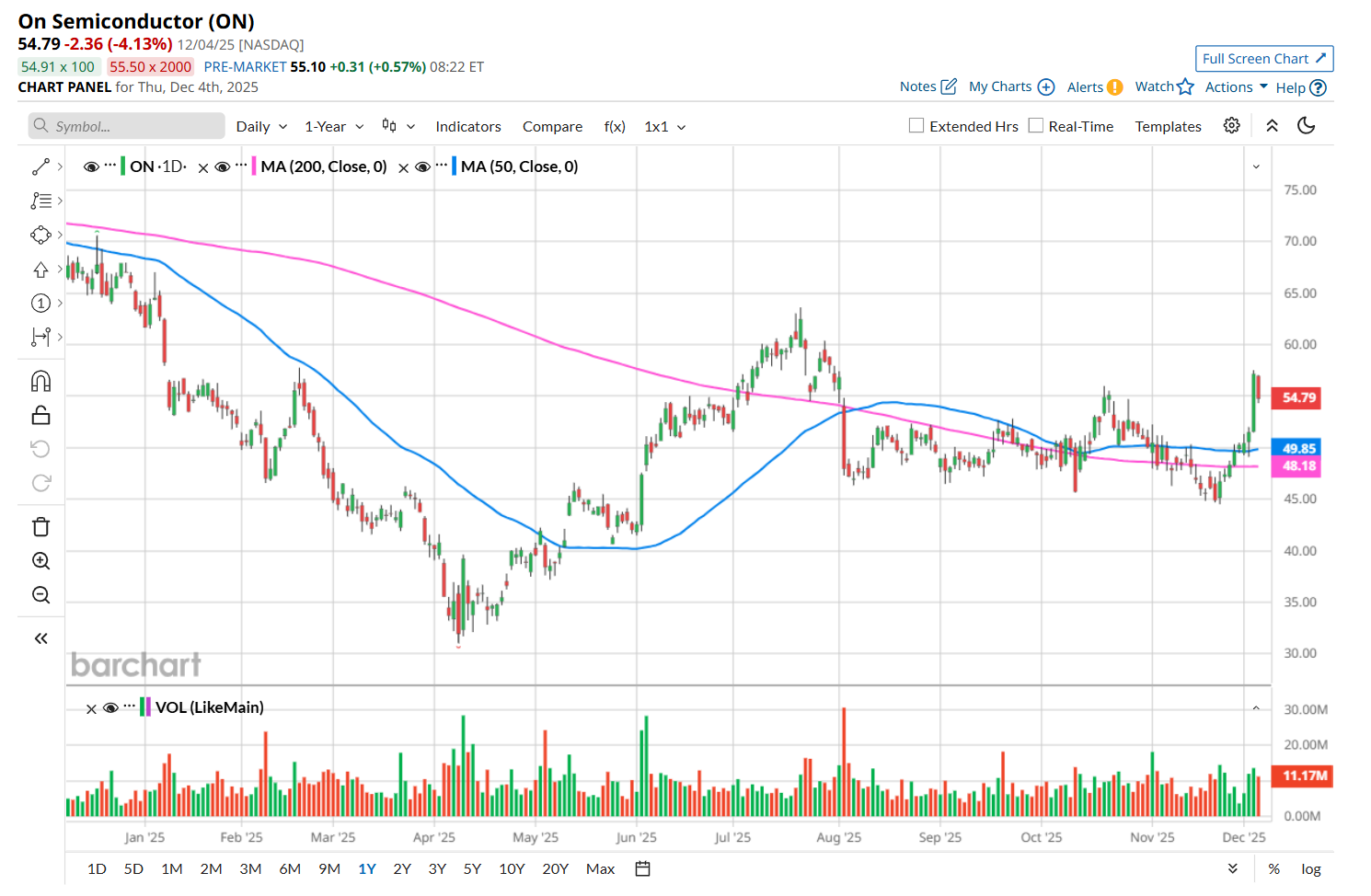 To confirm its recent bullish trend, ON has been trading above its 200-day and 50-day moving averages since late November.