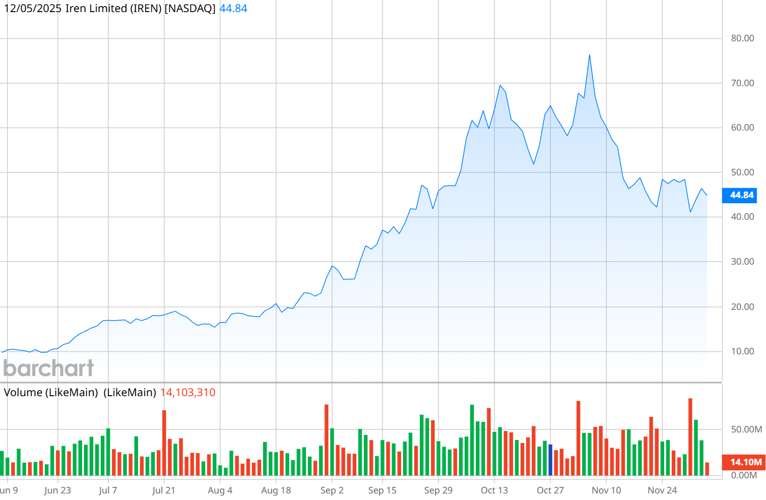 The growing interest in data center capacity has been a major tailwind for IREN stock, which, despite its recent weakness (down 40% in the past month), is up nearly 355% so far this year, helping to push its market capitalization over $13 billion.