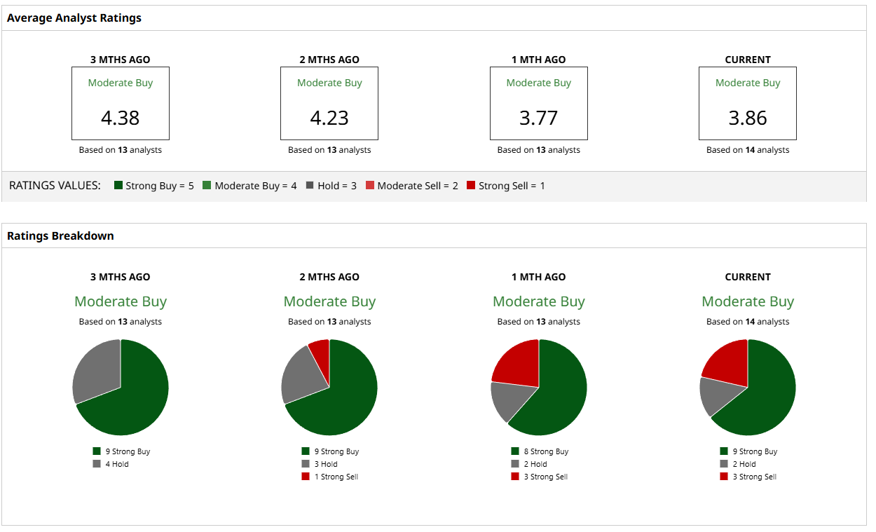 Nine of 14 analysts surveyed by Barchart have Iren stock as a “Strong Buy,” with two suggesting investors hold the stock and three others calling it a “Strong Sell.” But three months ago, there were no “sell” ratings at all—the trend of cautious sentiment is slowly building.