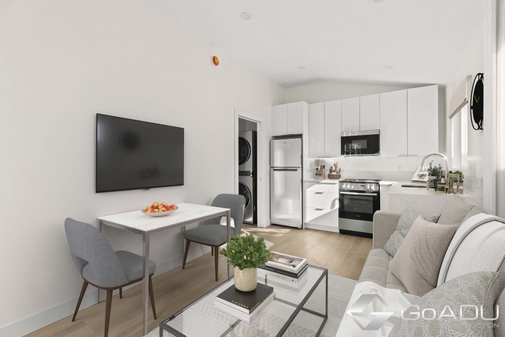 Next, Go ADU and its in-house designer, outside designers, and architect create detailed floor plans for the new ADU. These plans cover each room, bedroom, and bathroom, along with kitchen layout, cabinet design, doors, flooring, lighting, exterior finishes, and engineering details. The team prepares plans for single-story ADUs, second-story units above the garage, and backyard ADU homes, giving homeowners a clear visual of how the new accessory dwelling units will relate to the main building and any future home remodeling or renovation work.